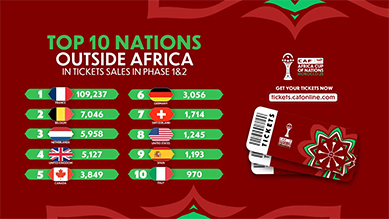 While ticket demand has been high across Africa, France has emerged as the leading market outside the continent, with an impressive 109,237 tickets sold so far — a figure that underscores the country’s deep-rooted connection to African football. Belgium (7,046) and the Netherlands (5,958) round out the top three, followed by the United Kingdom (5,127) and Canada (3,849).