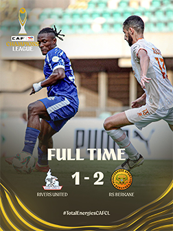 Rivers United had taken the lead in the 38th minute when a Berkane defender and Senegalese import, Mamadou Lamine Camara cleared the ball into his own net. Rivers United held on tenaciously to the lone goal till the regulation time.