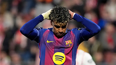 By contrast, Barcelona were lethargic, spurning several gilt-edged chances to take the lead. Lamine Yamal was the main culprit, twice missing from close range before crashing a penalty off the base of the upright in first-half stoppage time.