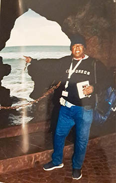 Inside the cave. An opening that looks like a nature-carved outline map of Africa, seen as reversed from within, but depicting the actual when viewed from the Atlantic Ocean. Here, I stand by the bronze carvings of Hercules.