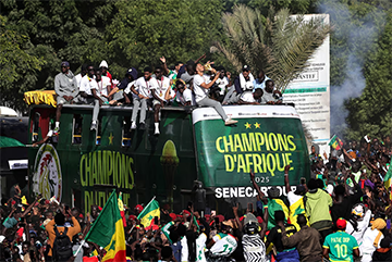 Earlier on Tuesday, the Senegal players rode atop a bus emblazoned with the words “African champions” along Dakar’s corniche towards the presidential palace.